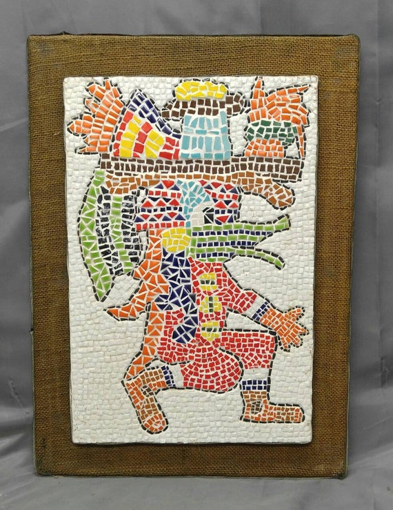 Old Vintage Mid Century Modern Mosaic Tile Wall Hanging Plaque Native Tribal Motif